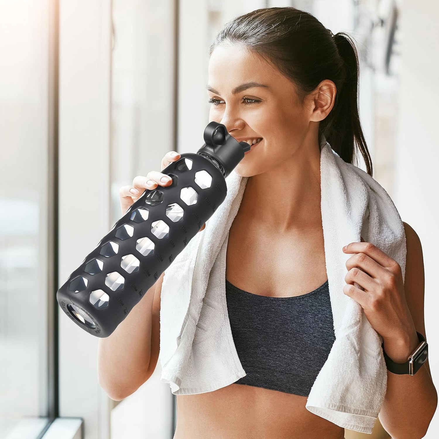 - GLASS WATER BOTTLES WITH TIME MARKER:MUKOKO 32oz glass water bottle with time marker preserves the purity of water.This is a very handy way to keep up with daily water intake,stay hydrated and healthy.