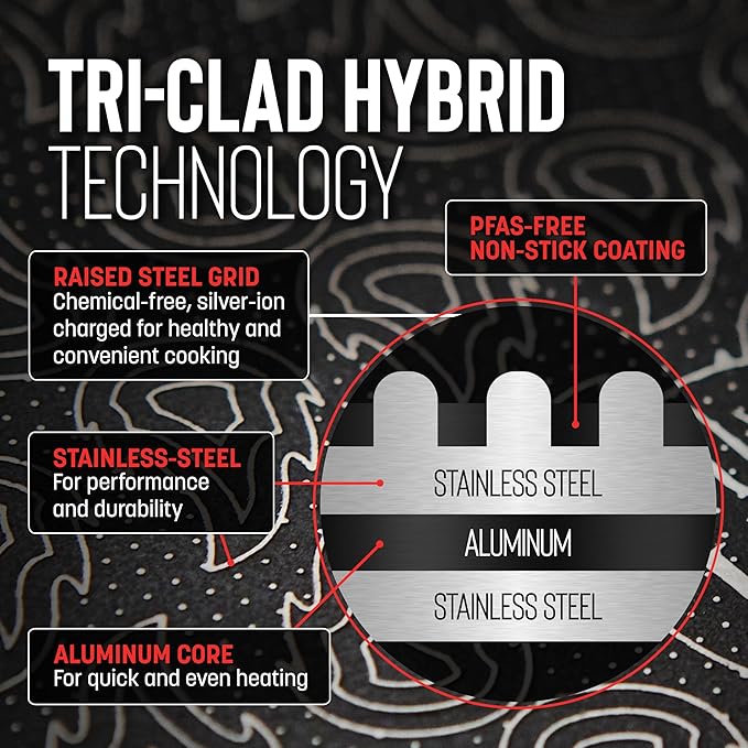 - PFAS-FREE NONSTICK: Hell’s Kitchen Tri-Clad Hybrid cookware contains a diamond reinforced non toxic ceramic nonstick, free of forever chemicals and silver-ion charged for healthy cooking.