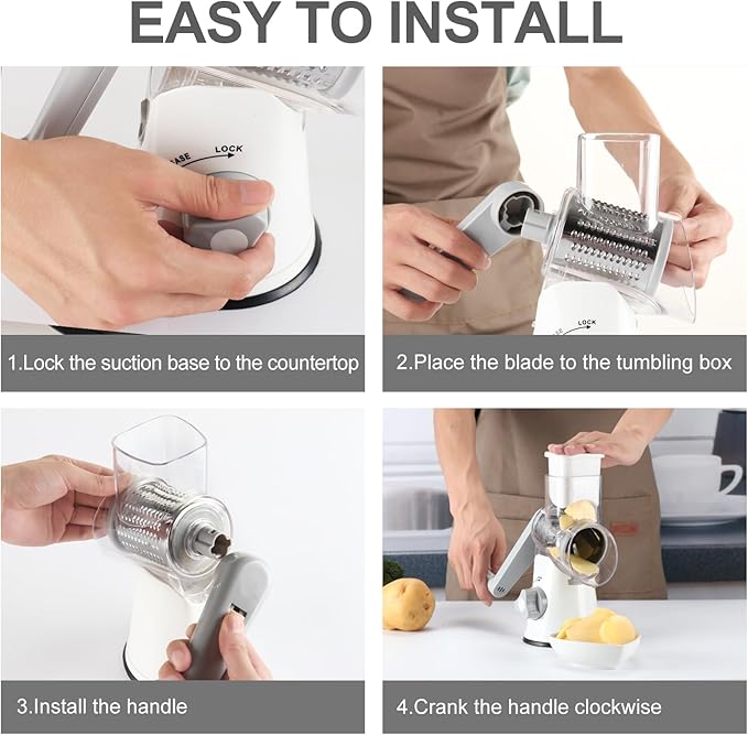 Cambom 5 in 1 Rotary Cheese Grater Hand Crank Cheese Shredder for Fresh Cheese, Vegetable, Nuts,Non-slip Suction Base, Five Blades, White