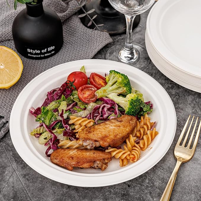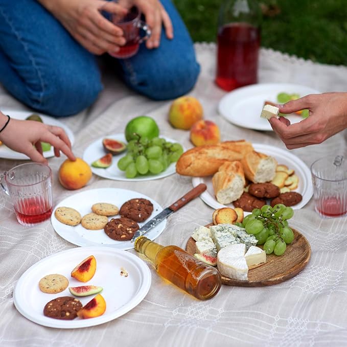 - 【Versatile & Easy to Use】Whether you're hosting a picnic, party or any other event, these biodegradable paper plates are suitable for any hot or cold dish. Disposable paper plates are a great way to ensure quick and easy cleanup, you just throw them away after using and save time by not having to clean. Allowing you to focus on your day and have more time with family and friends making unforgettable memories.