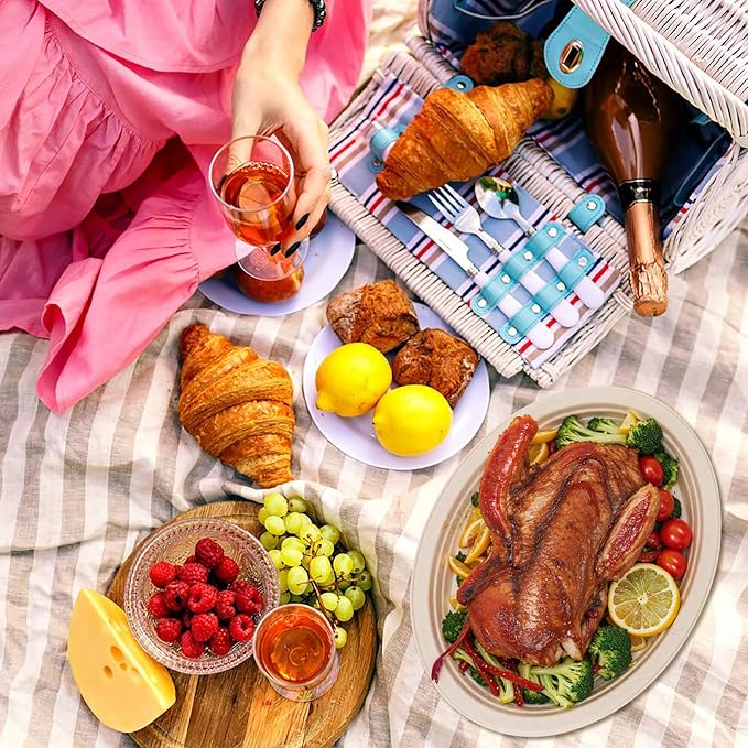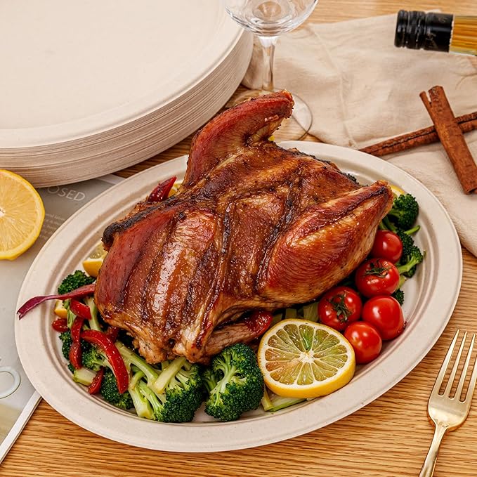 WELLIFE 100% Compostable Oval Paper Plates 12 Inch, 125-Pack Heavy Duty Paper Plates Bulk,Biodegradable Bagasse,Eco-Friendly Disposable Dinner Plate for BBQ,Picnic,Party (BPI Certified,Microwaveable)