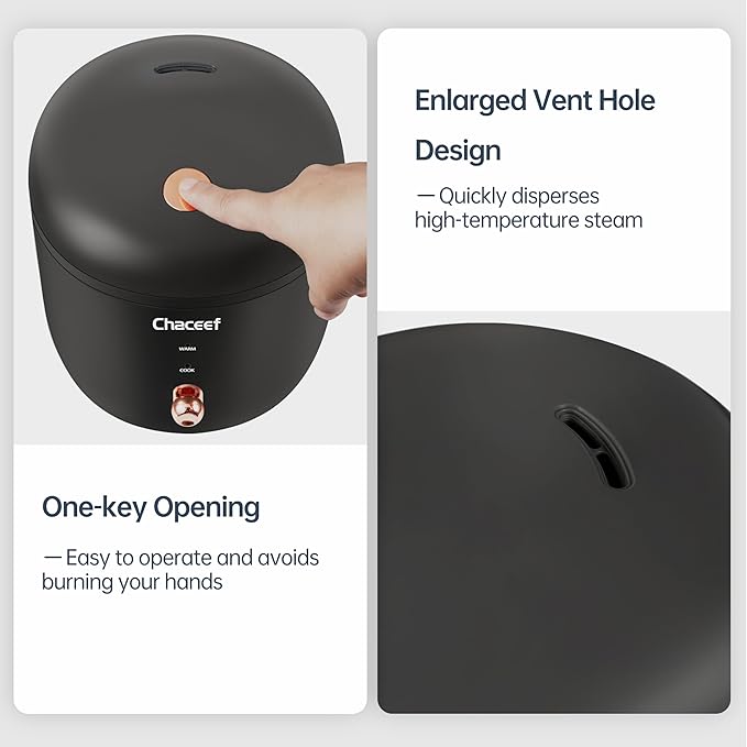 - 【Multi-use Rice Cooker】 With CHACEEF rice cooker, you can not only cook white rice, but also porridge, oatmeal, cakes, soups, steamed vegetables, etc. This rice cooker can meet your basic daily needs and create unlimited possibilities.