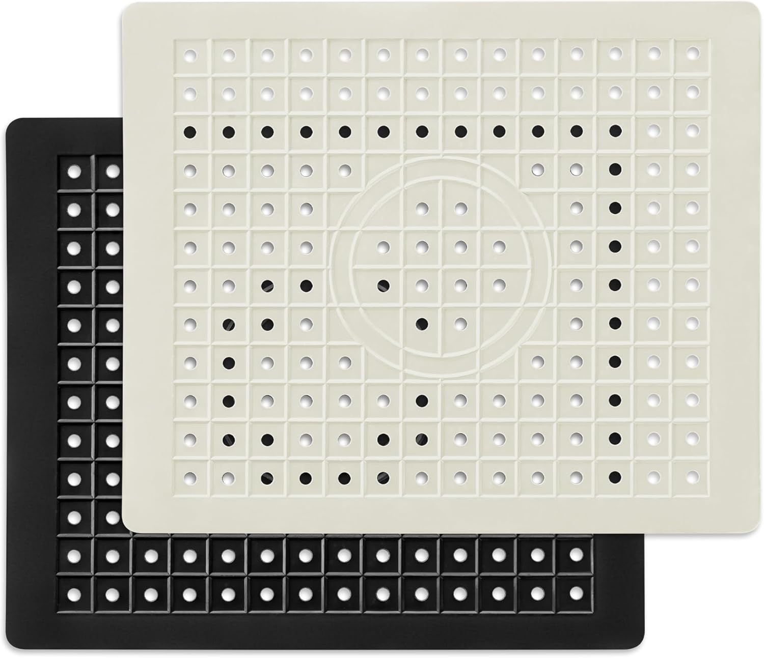 WILLKOMMEN 2 Pack Kitchen Sink Mat, 12'' x 10"" Dish Drying Mat for kitchen Counter, Durable Rubber Dish Draining Mat, Grid Sink Mat,Square Black & Cream White