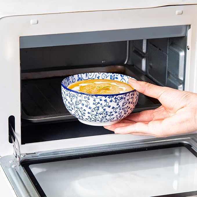 - TIMELESS ELEGANCE: Each of these unique vintage bowls sets in blue and white, inspired by Chinese aesthetics, is a one-of-a-kind masterpiece. They are adorned with beautifully mismatched patterns and coated with a layer of transparent, food-safe glazes. This not only ensures exceptional scratch and fade resistance but also makes them easy to clean.