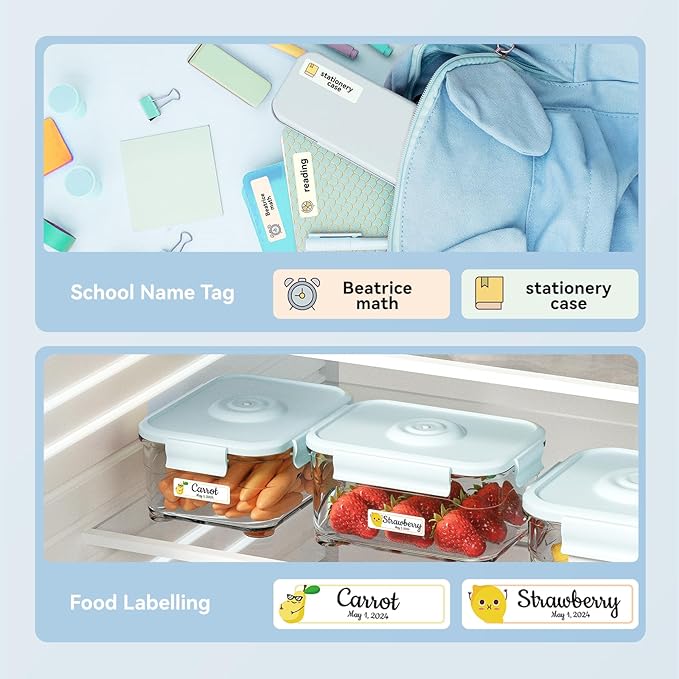 - 【Wide Compatibility】Ideal for home,kitchen, office, school, grocery and small business use, including food, kids stuffs, cosmetics, cables, and price tags. No ink or toner needed. Built-in 1500mAh battery ensures long-lasting performance. NIIMBOT D110 label maker is a nice choice for family and friends for valentines day, birthday, anniversary, housewarming, wedding, back to school, Thanksgiving and Christmas.