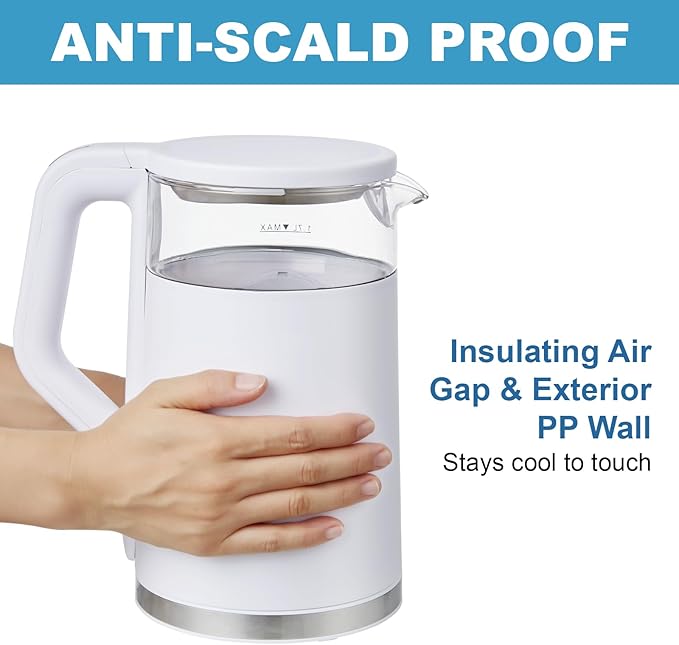 - 【Elegant and Durable Glass Design】Crafted from high-quality glass, this electric kettle combines style and functionality. The transparent body allows you to monitor the boiling process and check water levels easily.