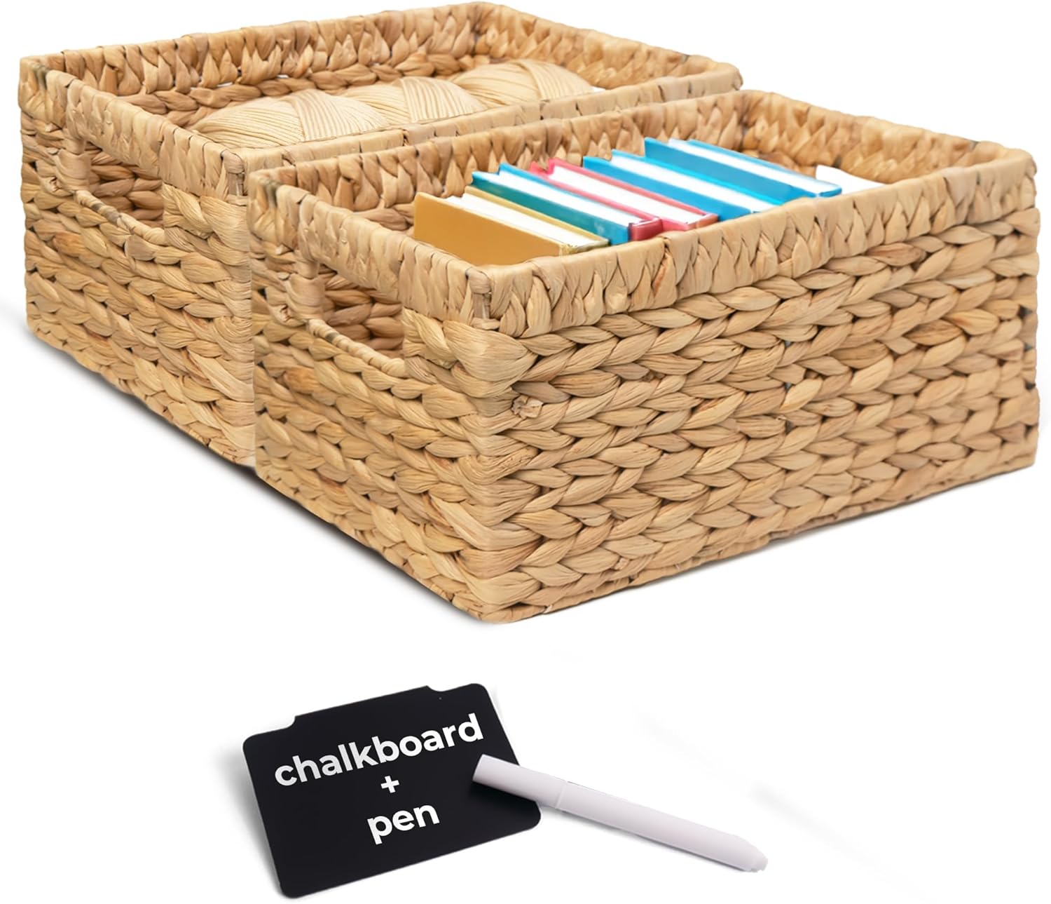 - ๐ฟ[ Pack of 2 Pcs] Designed to fit comfortably on shelves, or for room organizing. Hyacinth wicker storage baskets include two medium-sized woven storage bins (13.0 x 8.25 x 7.0 in). And may vary within 1/4 in due to handwoven.