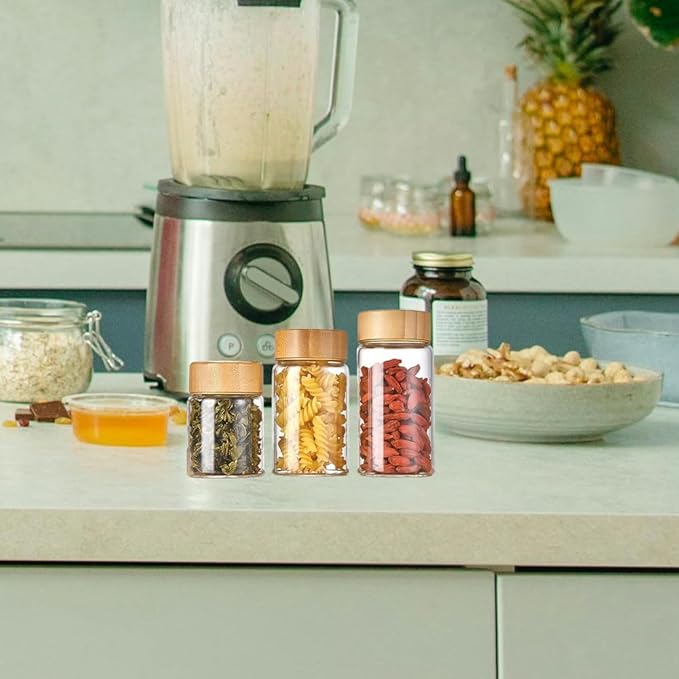 - 【High Sealing Performance】The small glass containers with lids, wide bottle mouth has a threaded design and the internally threaded bamboo lid.After tightening the spice jars lid, it can isolate air and create an airtight and moisture-proof effect, keeping food dry for a long time.Also great for use as candle jars for making candles.