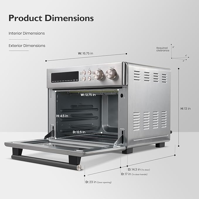 - [Family-Sized Capacity, Restaurant Quality] Fit a 6lb rotisserie chicken, 12" pizza, or 6 slices of toast simultaneously. The 26.3QT interior accommodates 2-3 cooking racks for multi-layer meal prep, saving 50% kitchen time.