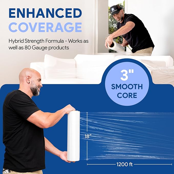 - CONQUER MOVING DAY: Wrap, bundle, and secure all your belongings with ease using this 17" x 1200 ft stretch film with 3" core. Move with confidence knowing your items are protected!