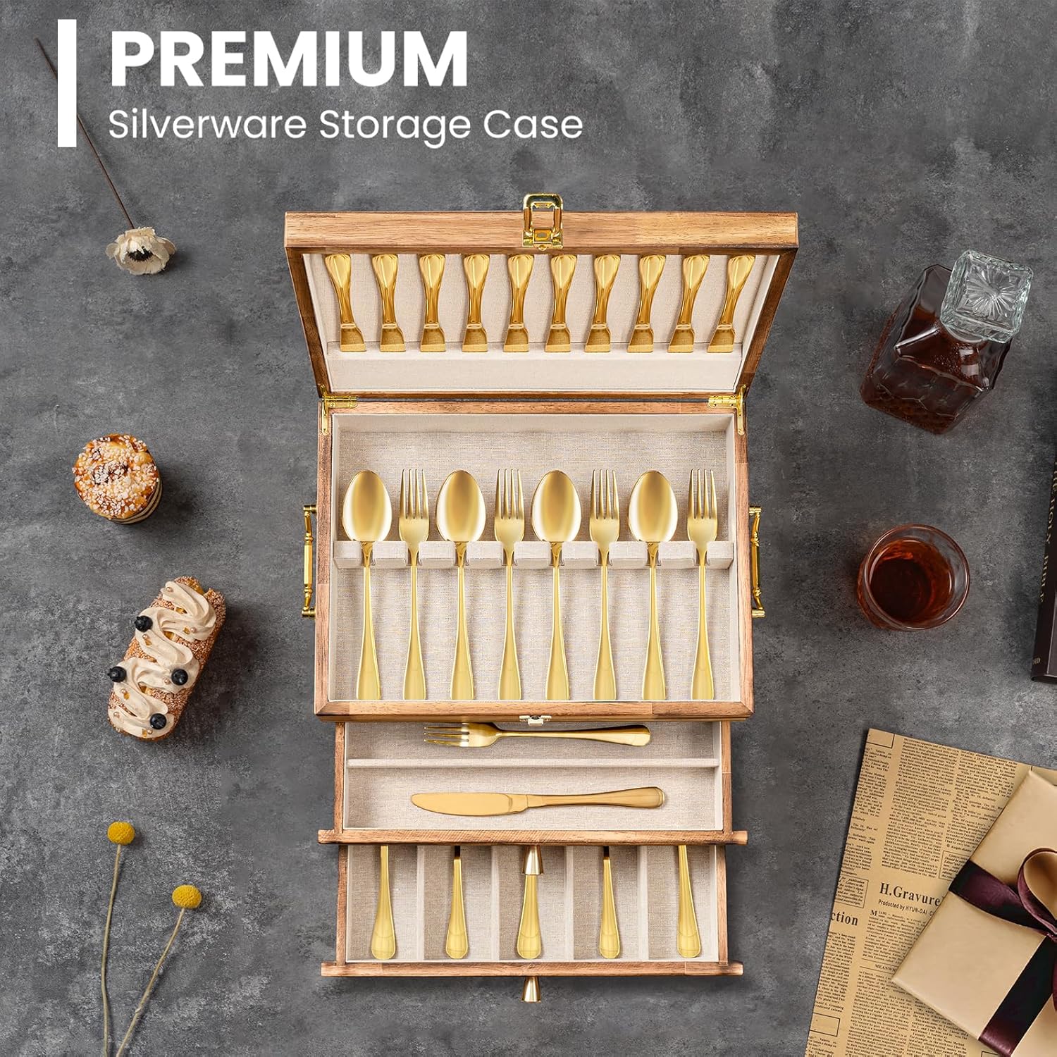 - Home Decorative Silverware Storage: Enhance your home's aesthetic with this wood silverware flatware storage box, displaying it in a cabinet or display case to add a touch of sophistication, resembling a piece of art.