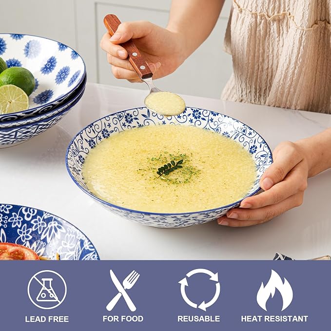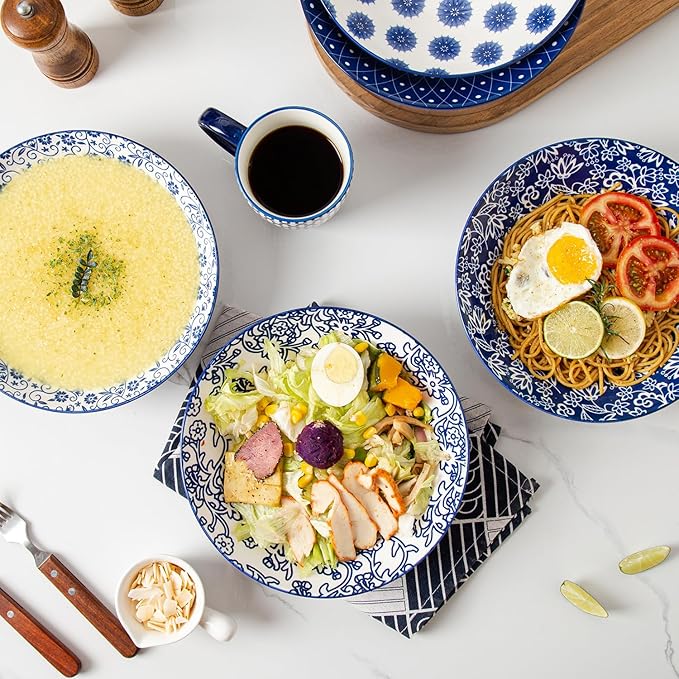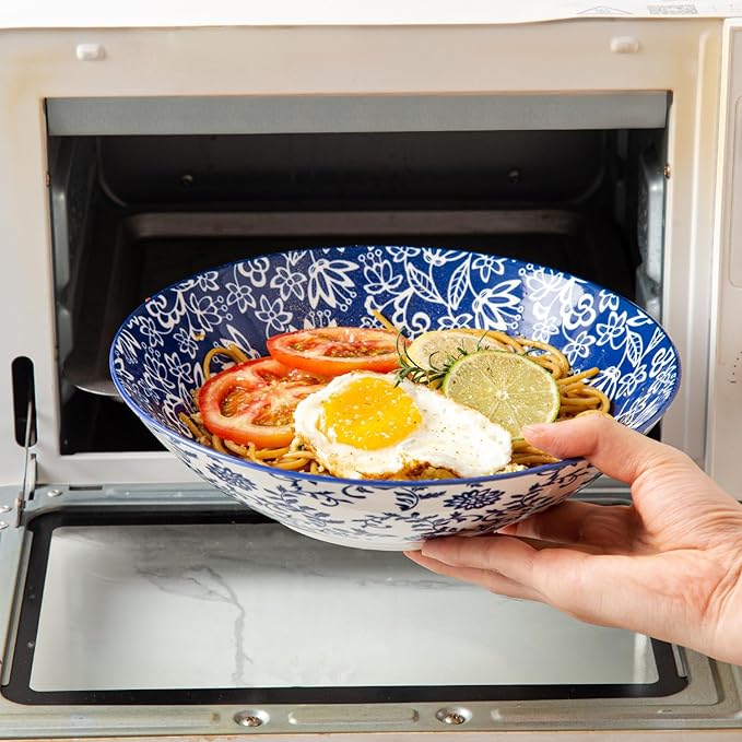 - VERSATILE DESIGN: These ceramic pasta bowls are wide and shallow, perfect for enjoying a variety of dishes such as noodles, pho, salad, soup, fruits, vegetables, cereal, and stir-fries. Ideal for everyday meals or special occasions.