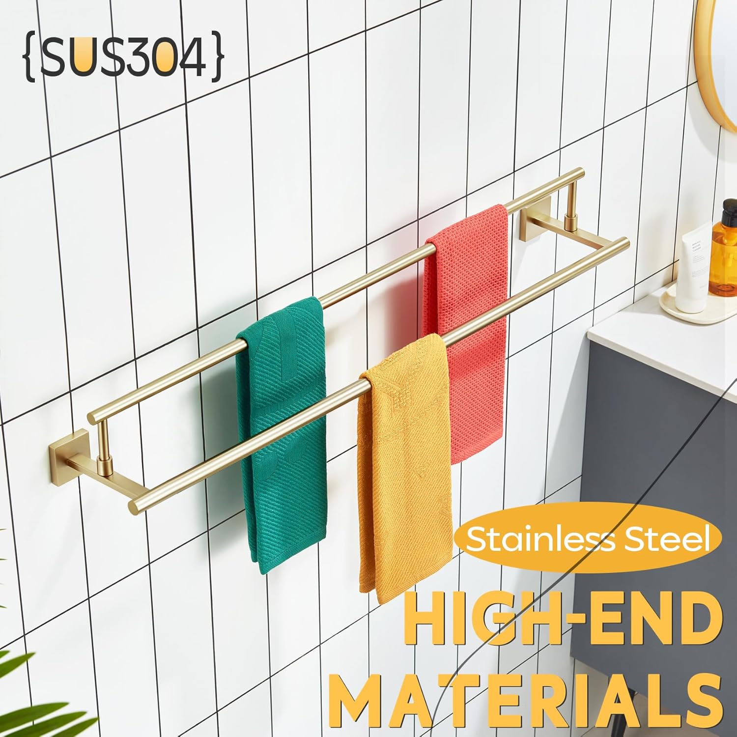 - ◄ PREMIUM MATERIAL ► KOKOSIRI Double Towel Bars made of SUS304 Stainless Steel and features an all-metal design using high-grade steel to resist rust and corrosion from daily use. For your health, all the materials we use are the highest quality and harmless. You can rest assured to use all of our products