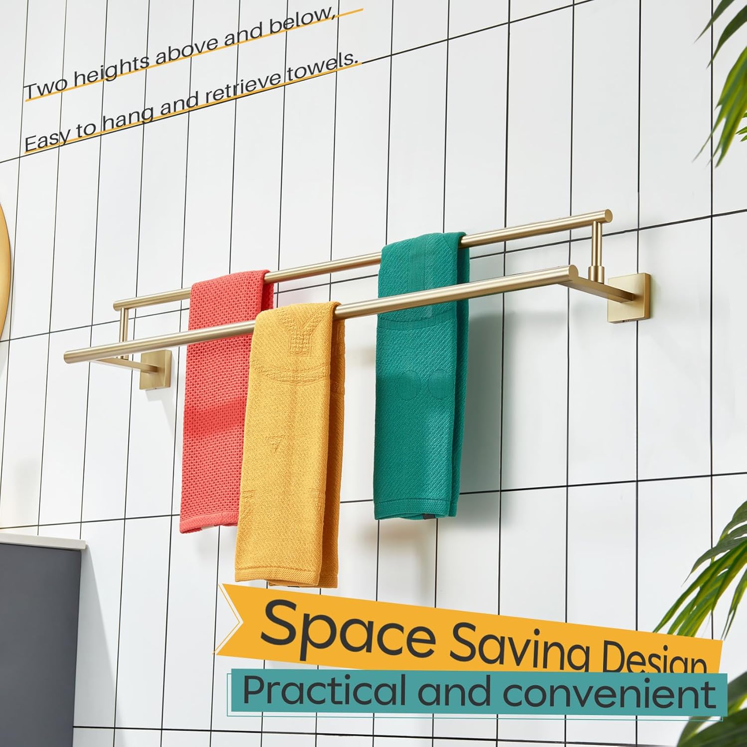 - ◄ MODERN DESIGN ► KOKOSIRI double towel rack with two rails combines elegant square, sleek round, and unique rectangle elements to bring a modern aesthetic to your bathroom, shower room, toilet, kitchen, washroom, pool or garage. You can choose from our series of bathroom hardware for a complete, coordinated look to your place