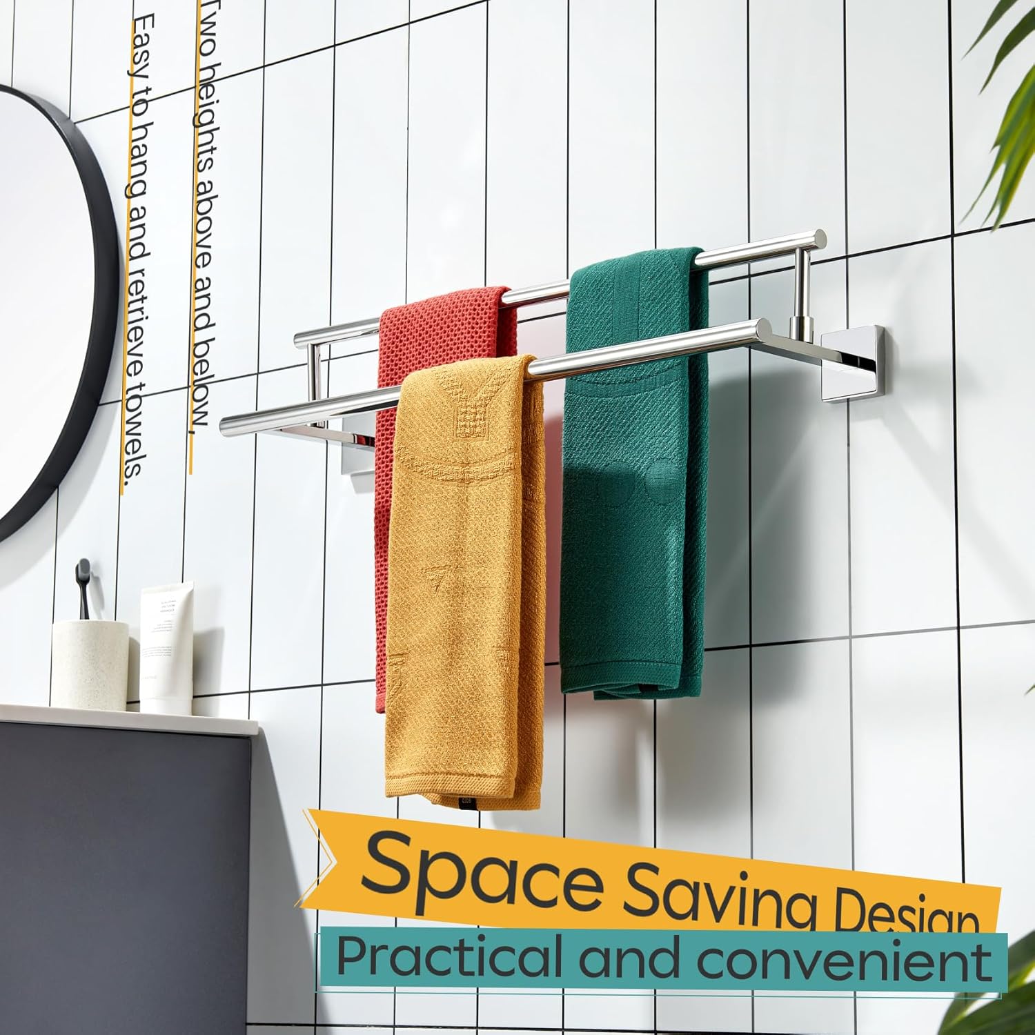 - ◄ PREMIUM MATERIAL ► KOKOSIRI Double Towel Bars made of SUS304 Stainless Steel and features an all-metal design using high-grade steel to resist rust and corrosion from daily use. For your health, all the materials we use are the highest quality and harmless. You can rest assured to use all of our products
