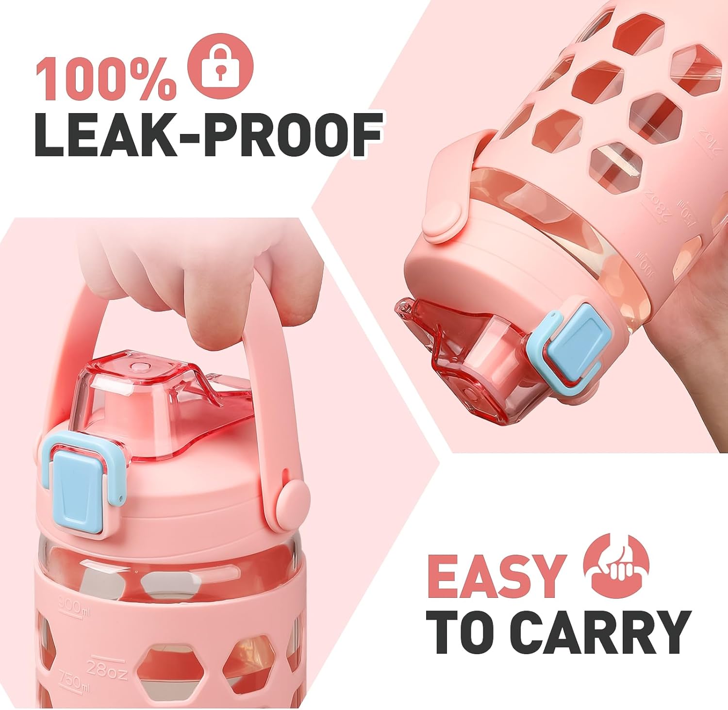 - SILICONE SLEEVES FOR BETTER GRIP:Use this water tumblers at home, office, take it to the gym or anywhere really! Our glass water bottles comes with a stylish silicone sleeve to offer you additional protection and to provide an extra grip to the bottle. The sleeve is removable, so you can use the water jug with or without it.