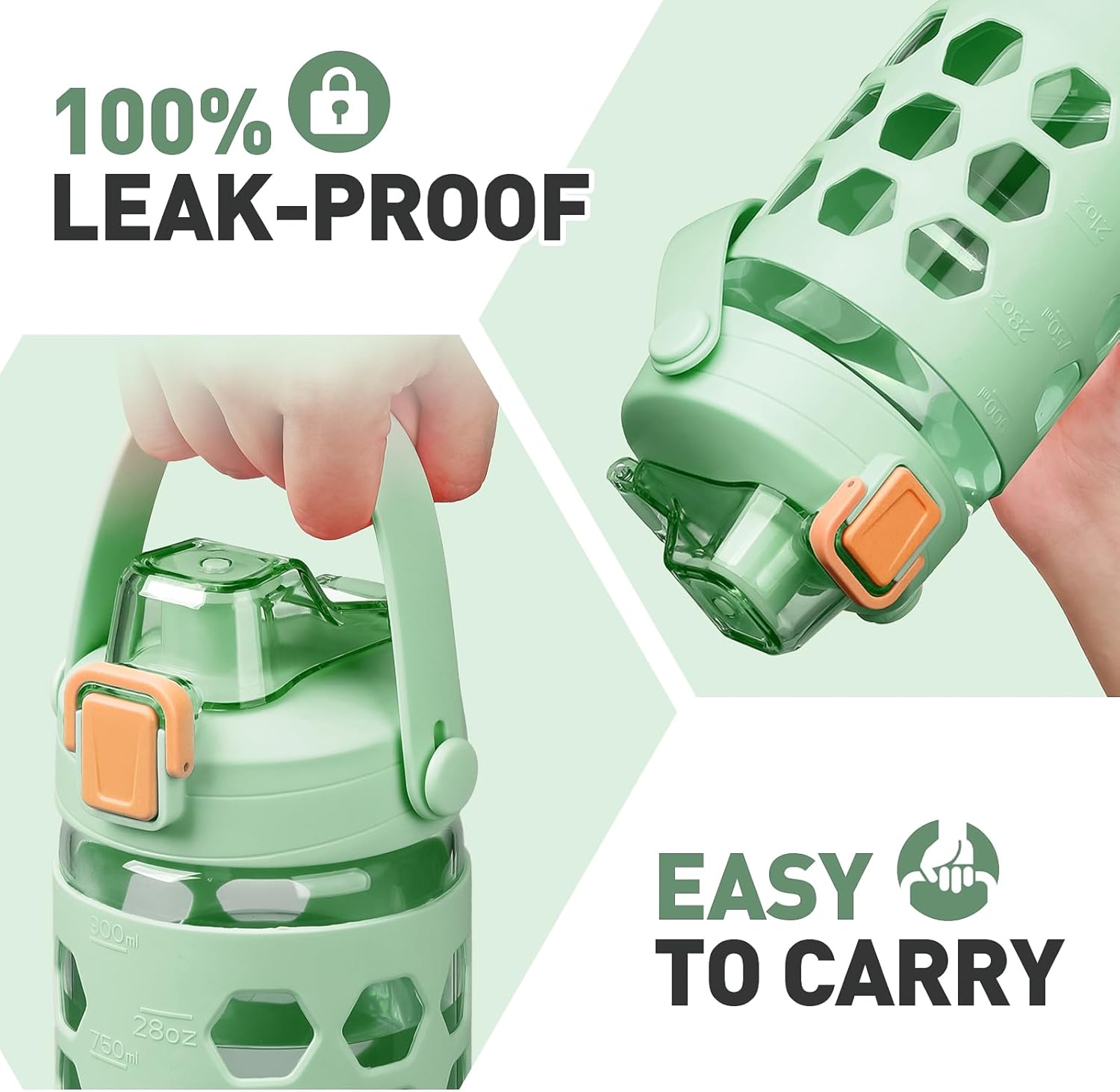 - SILICONE SLEEVES FOR BETTER GRIP:Use this water tumblers at home, office, take it to the gym or anywhere really! Our glass water bottles comes with a stylish silicone sleeve to offer you additional protection and to provide an extra grip to the bottle. The sleeve is removable, so you can use the water jug with or without it.