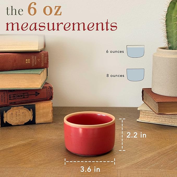 Mora Ceramic Ramekins - 6oz, Set of 6 - Small Oven Safe Baking Dishes/Cups - For Personal Pudding, Creme Brulee, Souffle, Serving Dip, Custard, Ice Cream - Single Mini Bowls - Artisan Colors