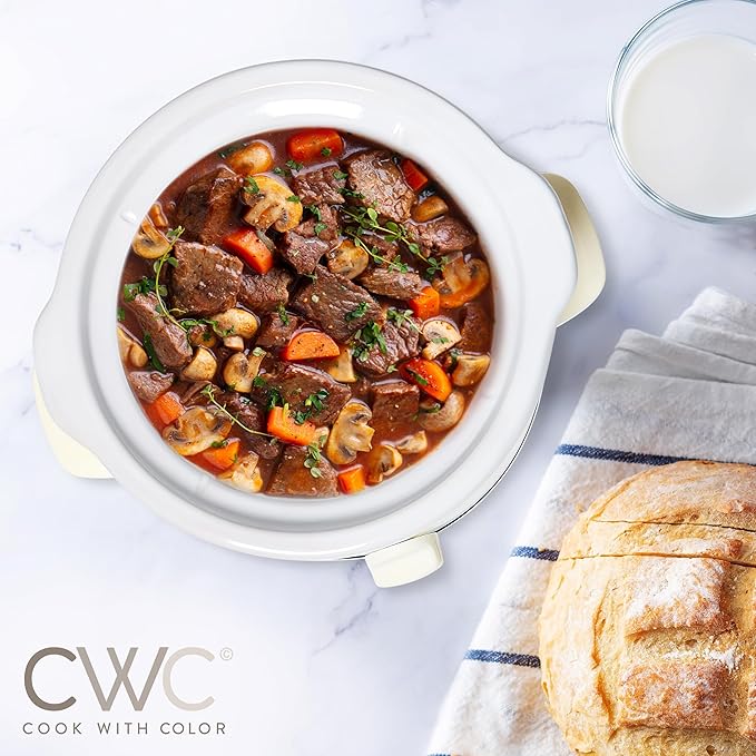 COOK WITH COLOR 2QT Mini Electric Round Slow Cooker - Adjustable Settings, Removable Stoneware Pot, Tempered Glass Lid, Dishwasher Safe, Cool-Touch Side Handles, Cream