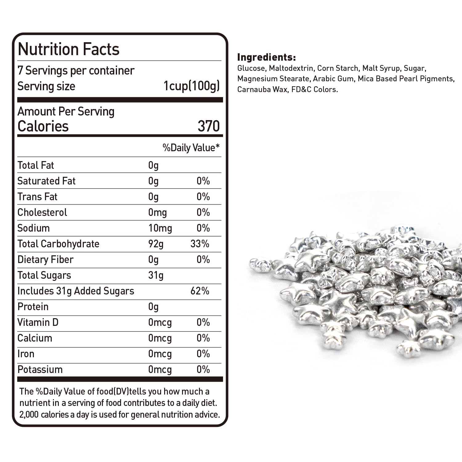 Dazzjoy Edible Silver Star Sugar Sprinkles, 4.23oz, Mix Size, Candy Star Sprinkles for Cake Decorations and Cupcake Toppers, Ice Cream, Wedding Party Valentines Easter Supplies