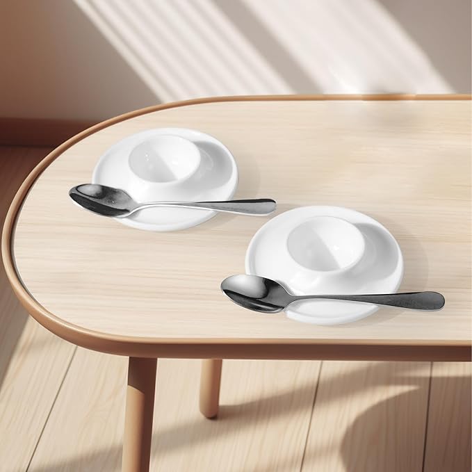 Cinf Ceramic White Egg Holder Set of 2 Porcelain Holder With 2 Stainless Steels Egg Spoons Breakfast Boiled Cooking Easy to Clean Childhood Memories Kitchen