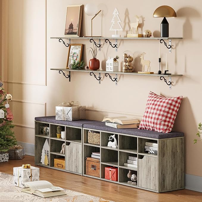 - 【Age with Grace in Any Setting】Turn your any wall into a real eye-catcher space with these large wall shelving. Long and wide enough for plates, glasses, books, legos, collection or towels etc. Make a statement in entryway, bathroom, balcony, study, kitchen, laundry, bar area, pantry