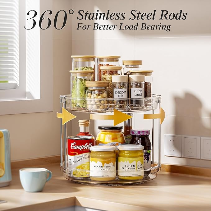 - Versatile Stackable Design: Customize your space by stacking these units into a 3-tier large capacity Lazy Susan organizer when you buy 2 Sets — well-suited for bathroom counter organizer makeup, perfume, medicine, kitchen cabinet organizer spices or seasoning, cans, beverages, and more
