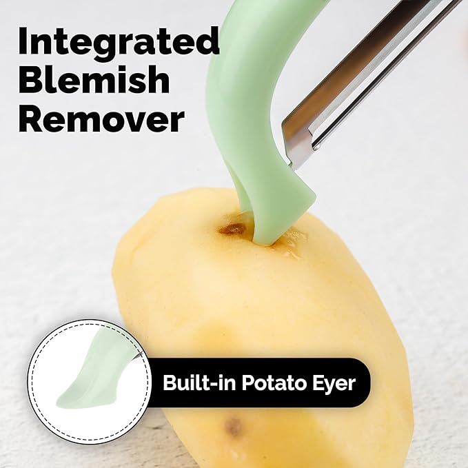 - PEELING MADE EASY: Smooth and effortless peeling starts with our vegetable peeler! With a swivel design, this peeler is made with dual sharp blades that glide through the surface of fruits and vegetables. The built-in blemish remover further adds to your convenience.