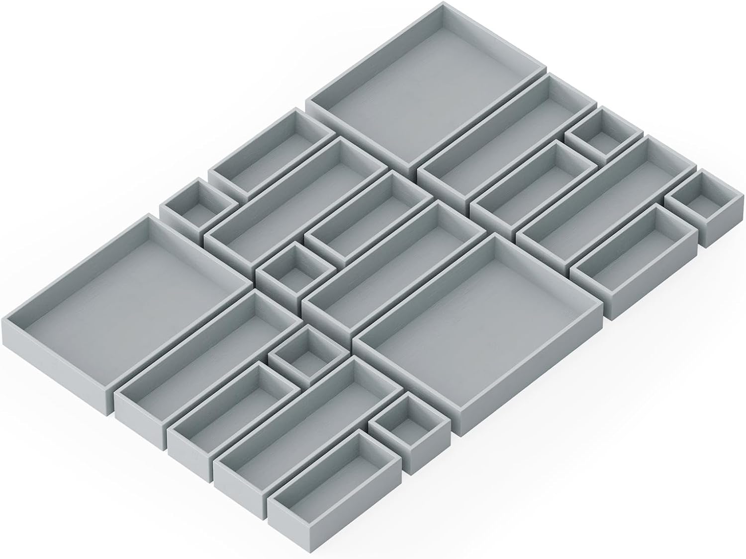 SpaceAid 21-Piece Bamboo Drawer Organizer Storage Boxes Set, Wood Tray Junk Drawer Organizers Multi-Use Divider Bins for Kitchen, Bathroom, Office Desk and Makeup Organization (21 Pack, Gray)