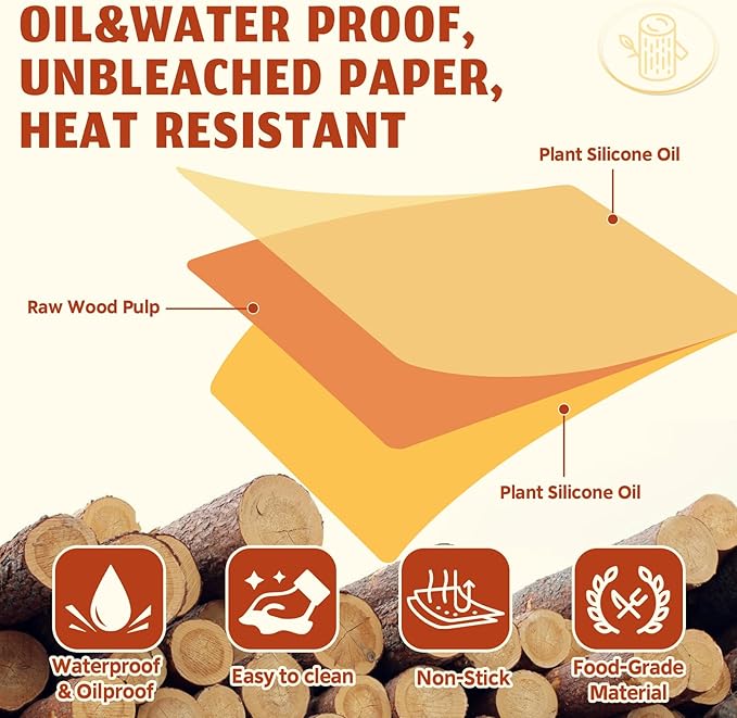 - Heat Resistant Up To 450°F/230°C: Elevate your cooking with our parchment paper for air fryer, tailored for Ninja air fryers. Crafted from untreated wood with a silicone coating, With a water-proof, oil-proof, non-stick, and heat-resistant design, they ensure health cooking every time. Remember, when using the air fryer paper, Please do not put the airfryer liners in the air fryers while preheating! always try to fill it with food as much as possible