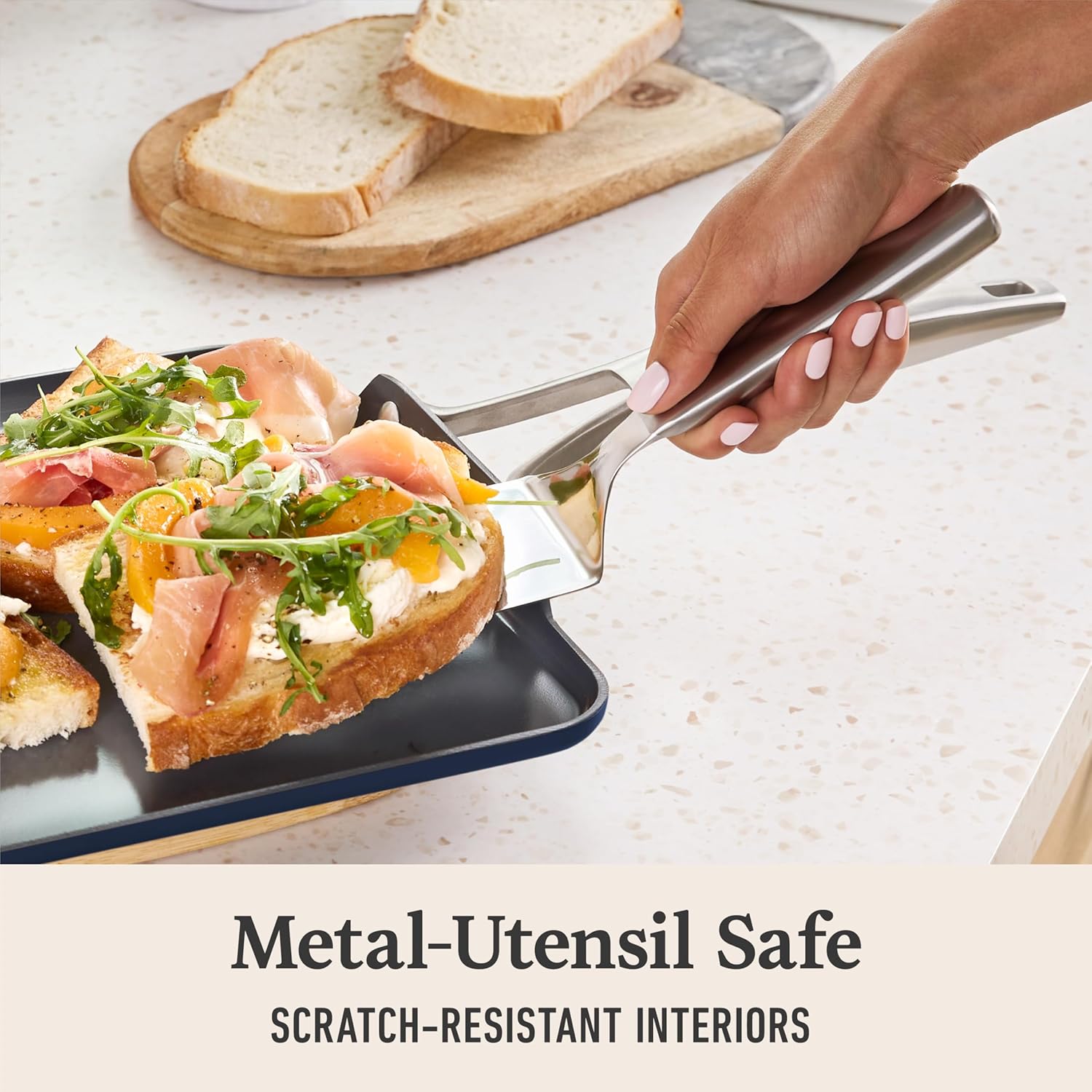 - Metal Utensil-Safe: Cooking from scratch deserves scratch-free cookware, so our ceramic pans have scratch-resistant interiors.