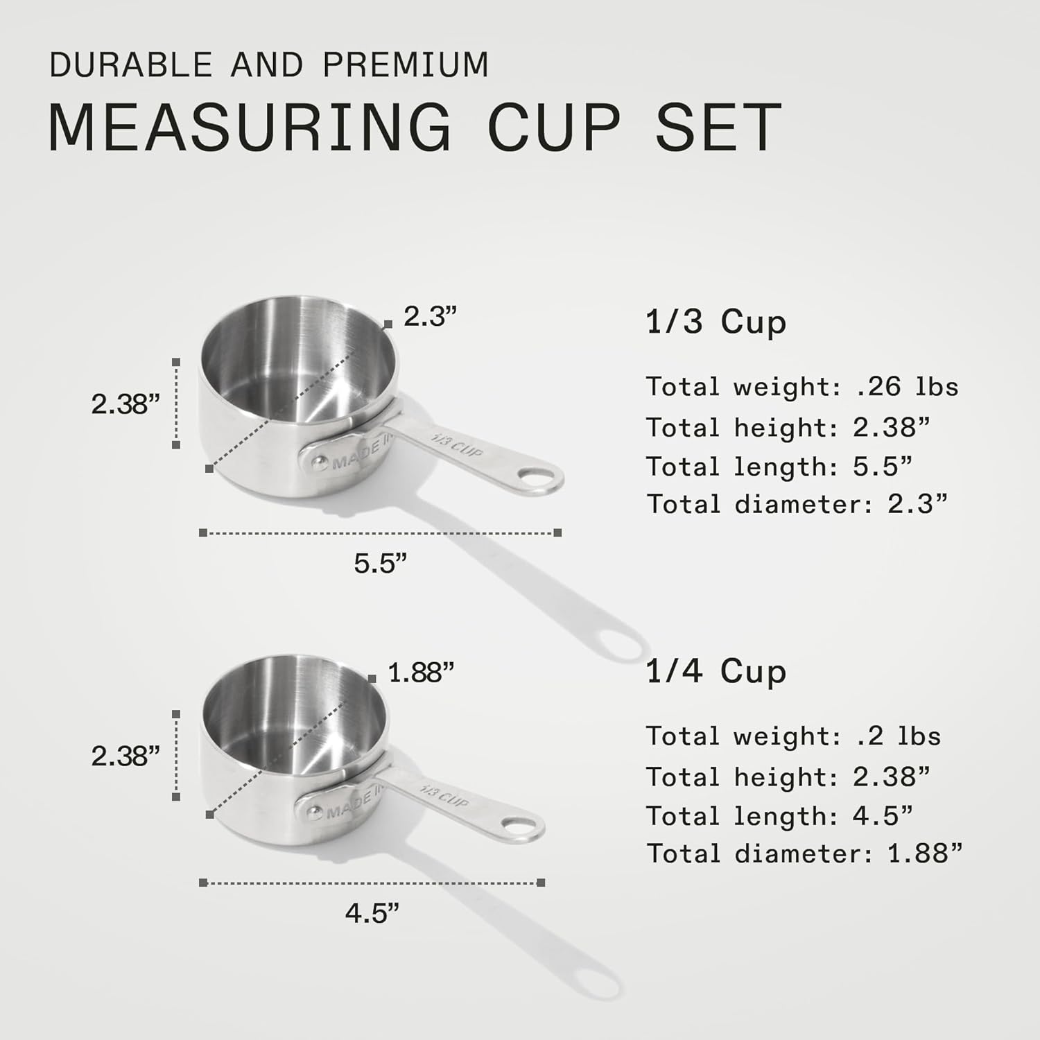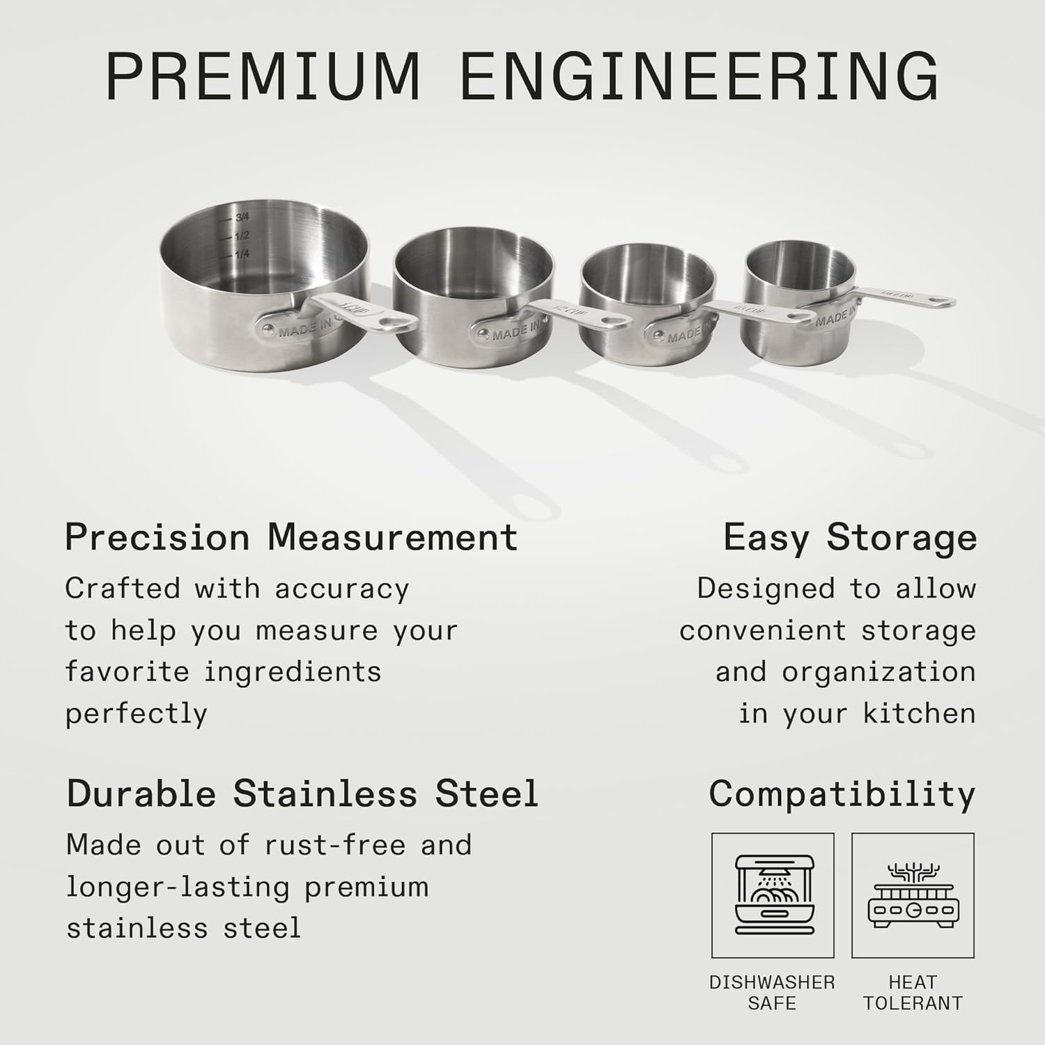 - 304 Stainless Steel Construction - Crafted from 304 stainless steel, Made In Measuring Cup Set offers durability and easy cleaning