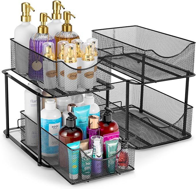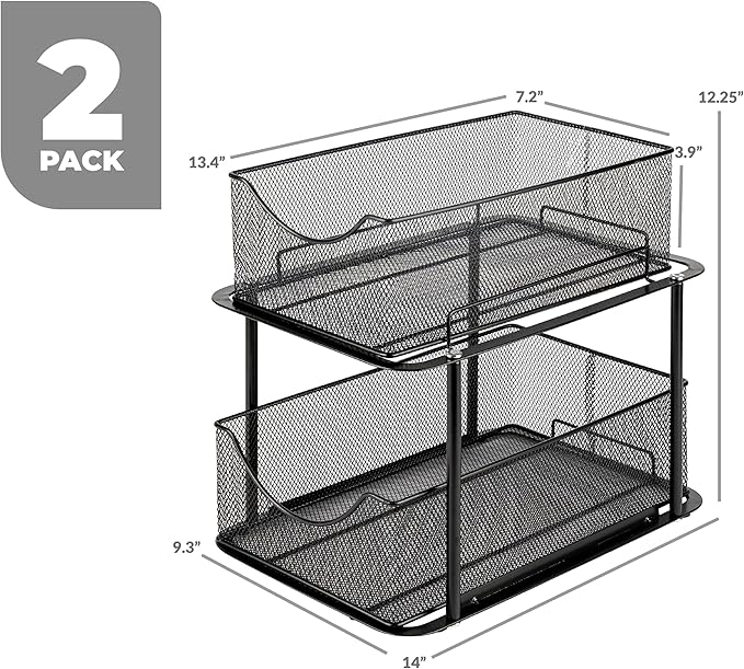 Sorbus 2 Sets of 2 Tier Metal Under Sink Organizer for Bathroom, Kitchen, Strong Steel Mesh Sliding Drawers for Under Sink, Under Cabinet, Closet, Kitchen, Pantry, Bathroom Organizers and Storage