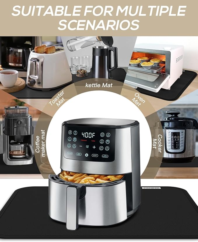- Protect Your Countertop: Our special mat can effectively protect your countertop from the damage of heat dissipation, to avoid the air fryer, deep fryer, coffee maker, oven or hot pot break your wood or marble countertop