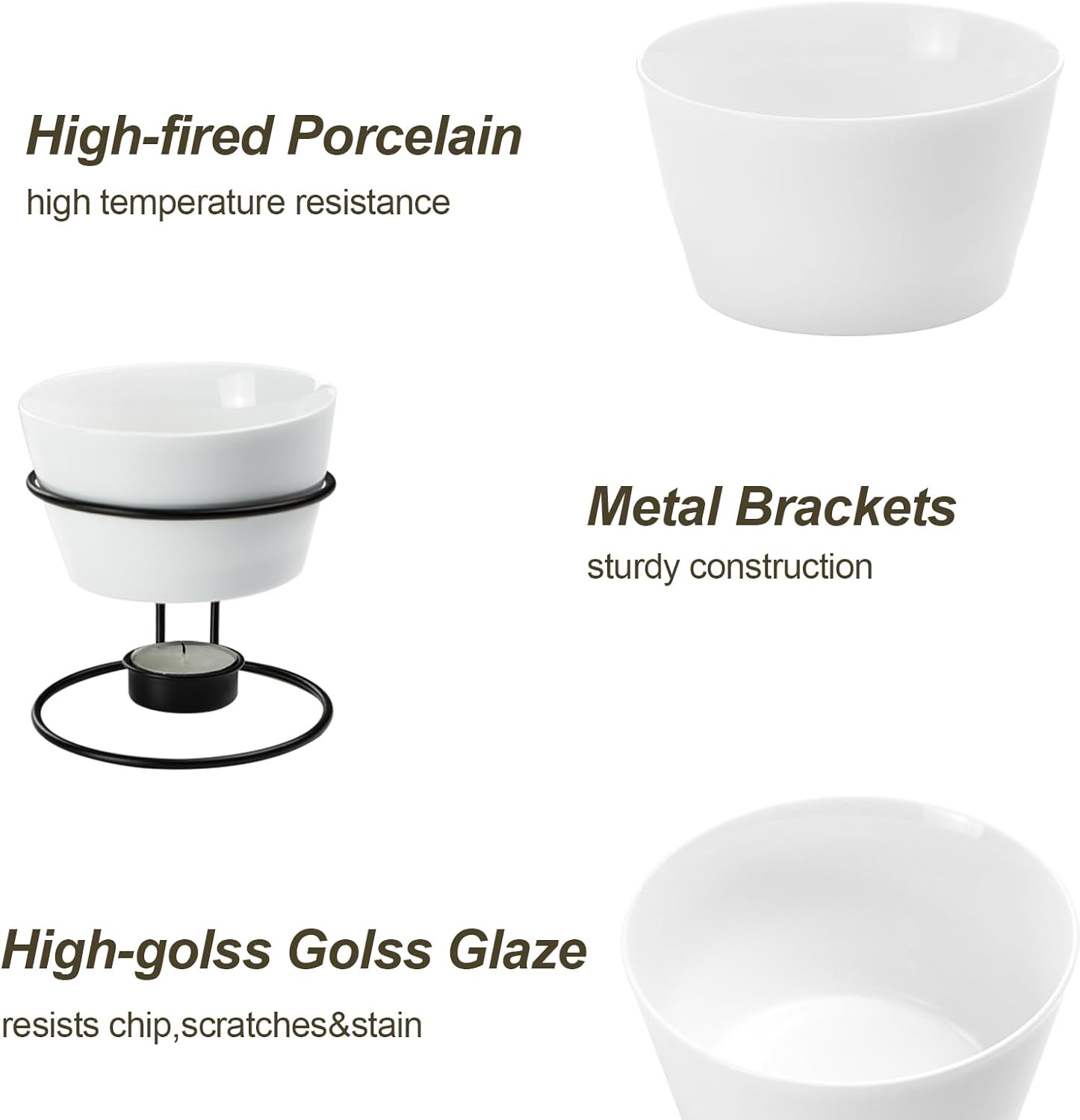 - 【Stability &Appropriate Temperature】Features sturdy wire frame that securely holds ceramic bowl in place,ensuring stability.This design offers enhanced stability compared to top support ring for suspending the ceramic bowl.There has been an adjustment in the tea-light candle placement to ensure an optimal distance from the flame to the ceramic bowl, providing gentle warmth and maintaining the butter at just the right temperature. Single-sided stands make it easier to light and extinguish candles.