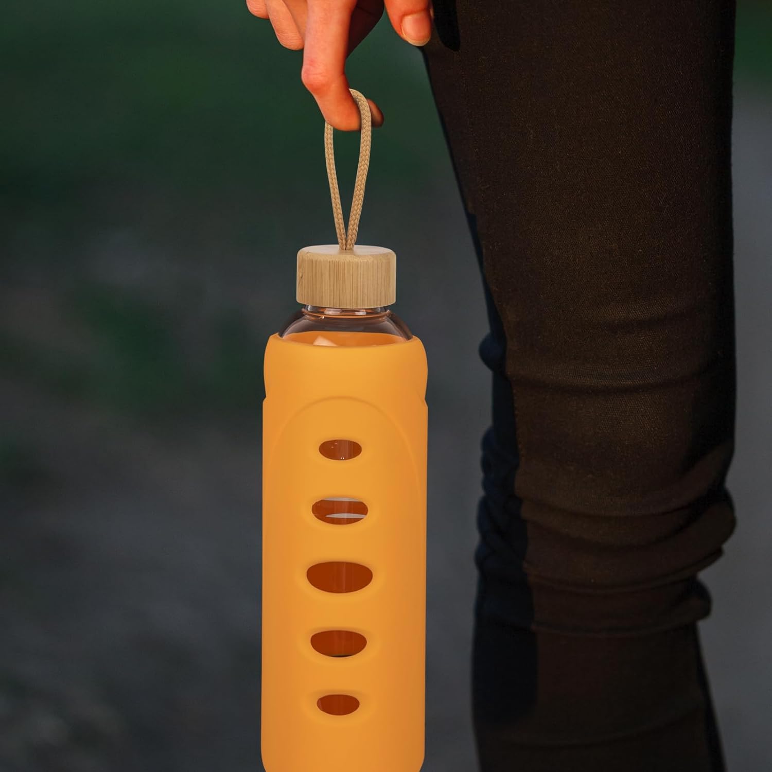 - STYLISH AND PORTABLE : Our sleek design makes the glass water bottle has an ideal travel buddy and elegant appearance. Outer Silicone sleeve offers secure grip and helps protect against breakage.