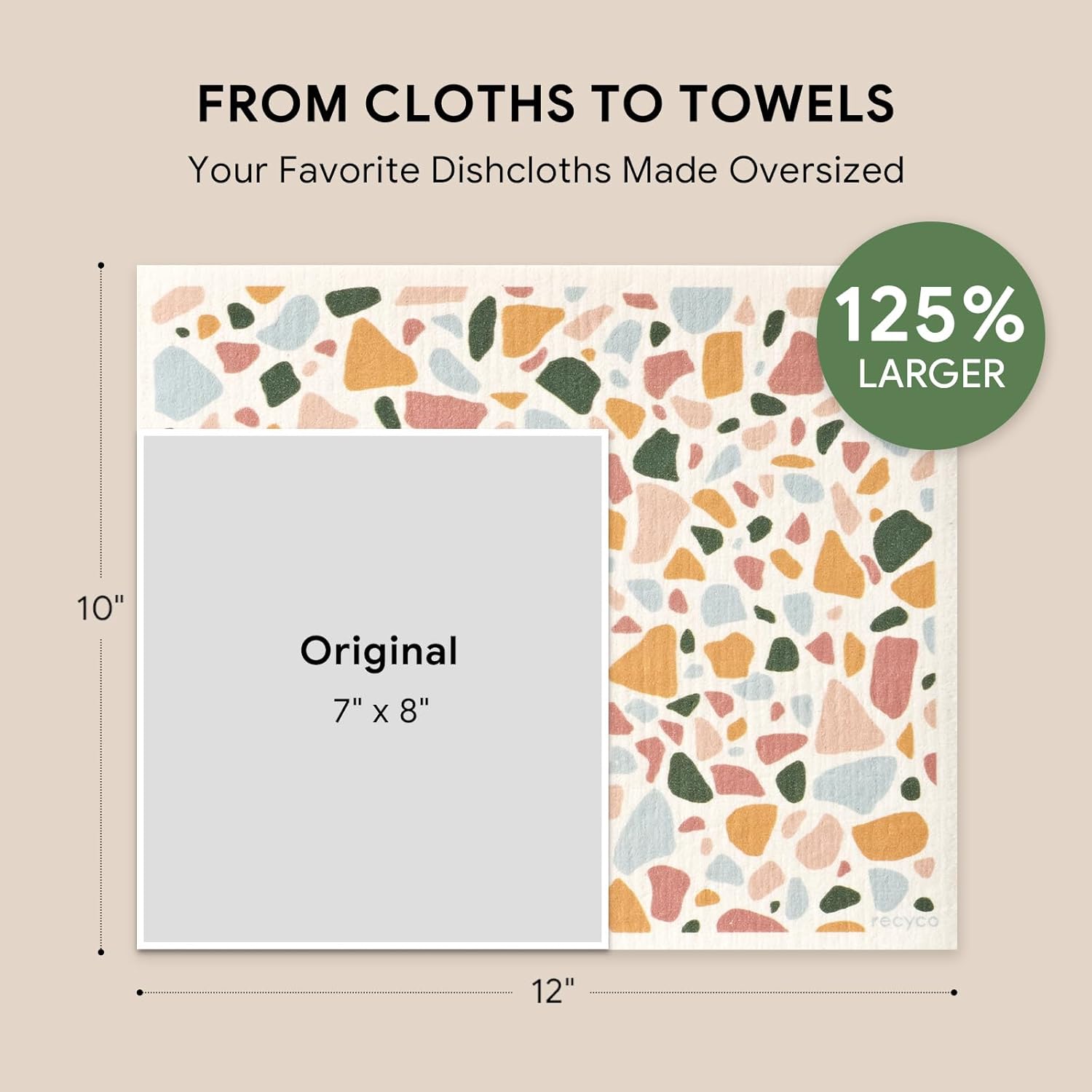 RECYCO Swedish Dishcloths for Kitchen | 4 Pack Oversized Washable Dish Rags | Large Cellulose Reusable Cleaning Paper Towels | Absorbent Counter Dish Cloth Sponge XL Kitchen Wipes, 12" L x 10" W