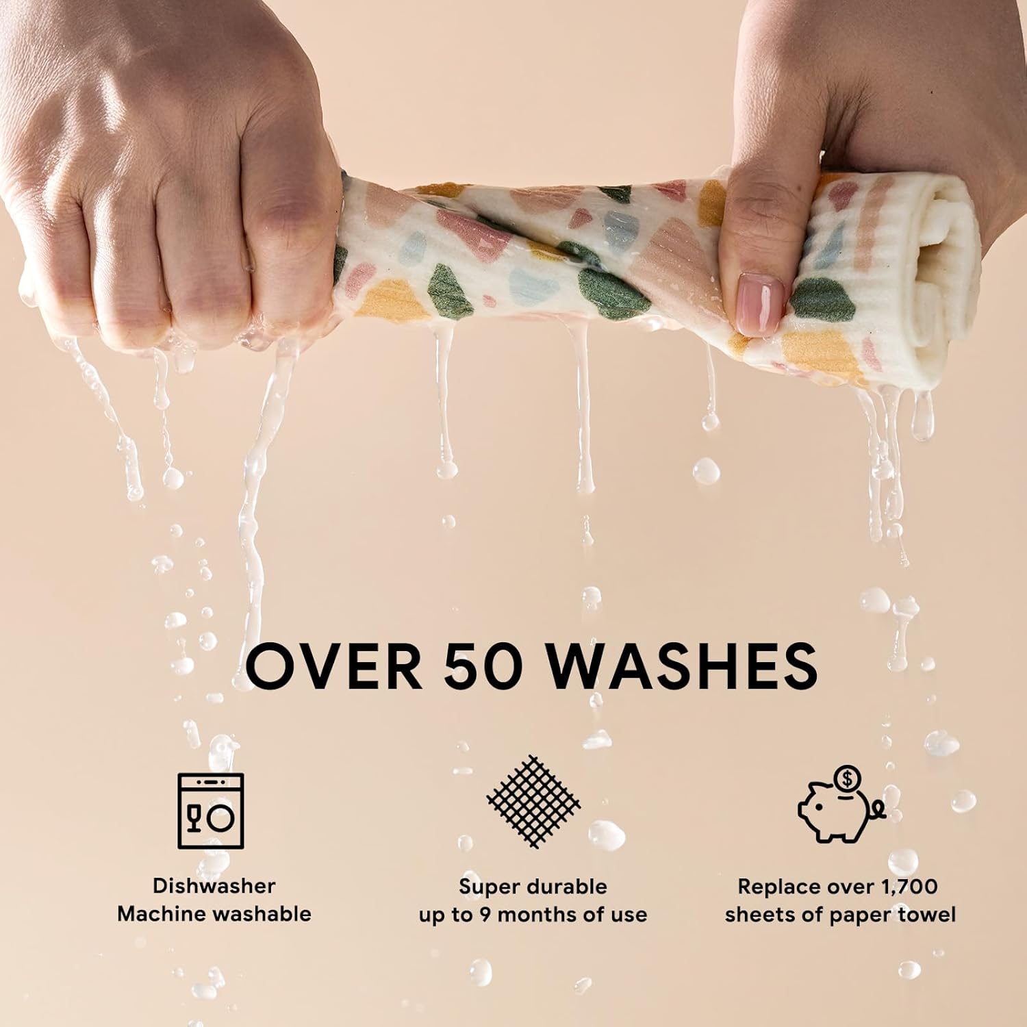 - Reusable & Save Money: Reuse our dishcloth is a no-brainer because of its ultra durability, it can replace 17 rolls of paper towels and effectively saves you up to $150 a year!