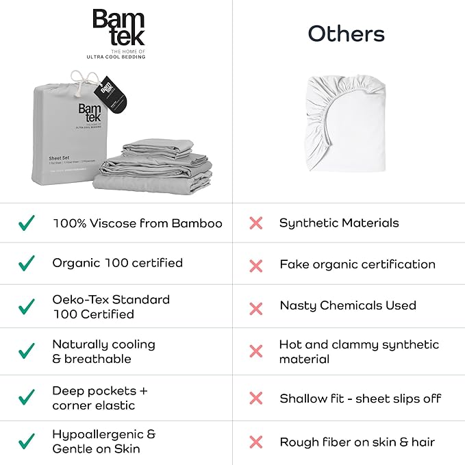 - Because You Deserve Better: Say goodbye to harsh chemicals, Bamtek 100% Viscose Bamboo Sheets are organically certified & Oeko Tex certified - skin friendly bedspread, a hypoallergenic bedding and those like you who value pure natural organic comfort.