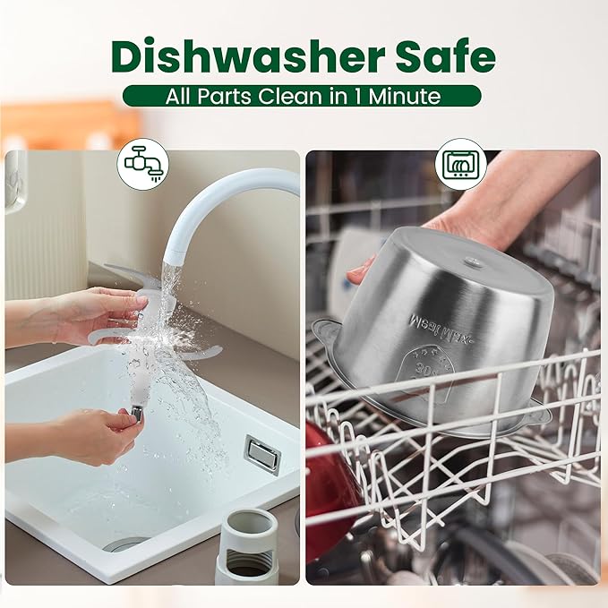 - 2L 8Cup Thick Glass Bowl + 8Cup 304 stainless steal Bowl, two sets 4 Sharp Blades : This food chopper equipped with one 8Cup glass bowl and one 304 stainless steal bowl , which meet various family needs,and glass visualization for easy monitoring while grinding.The 8Cup capacity bowl is stacked for storage, saving more space in your kitchen.