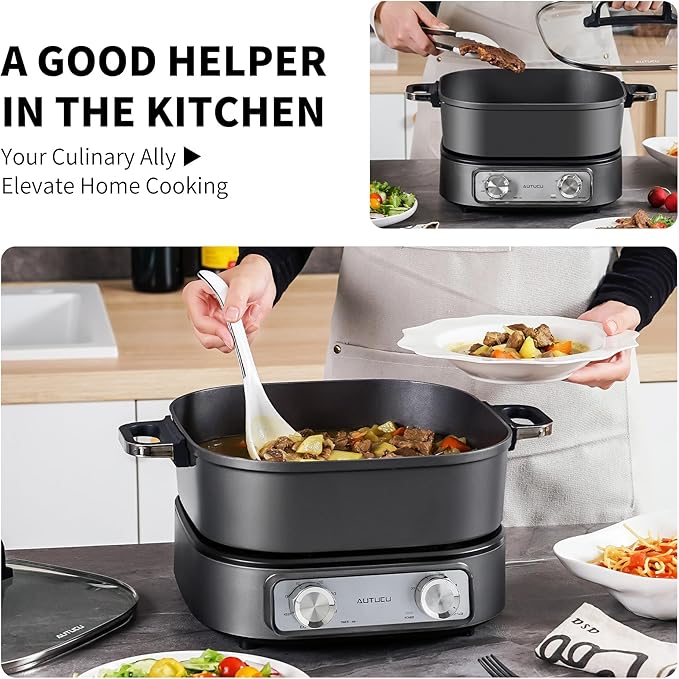 - 【Practical and Stylish】 N12NA multi-cooker (PFOA-free) features a 3.5 inch (9cm) deep pot to immerse most ingredients fully. The removable pot is dishwasher-safe, making cleanup effortless. With a sleek, modern design, it becomes a stylish gathering centerpiece while delivering reliable cooking performance.