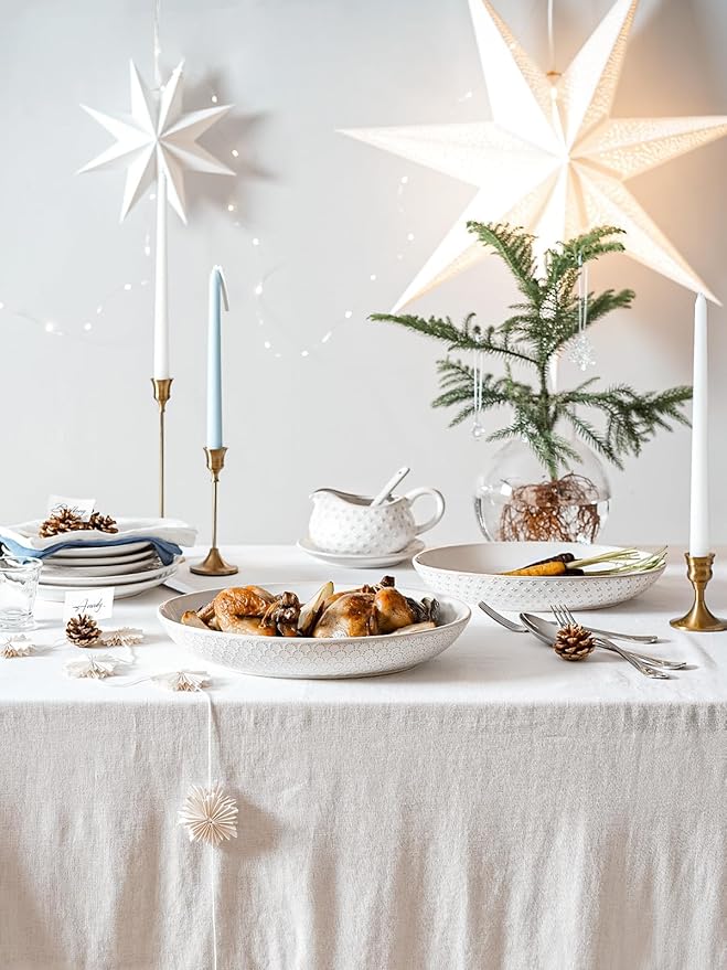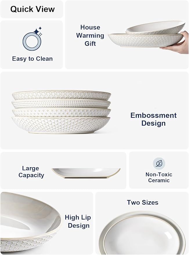 - Elegant Embossed Patterns: Featuring an arctic white glaze adorned with charming embossed patterns, these farmhouse-style large serving platters will infuse warmth and vitality into your home. The oval shape and elegant embossing suit various styles, making them a beautiful addition to your daily dinner or festive gatherings