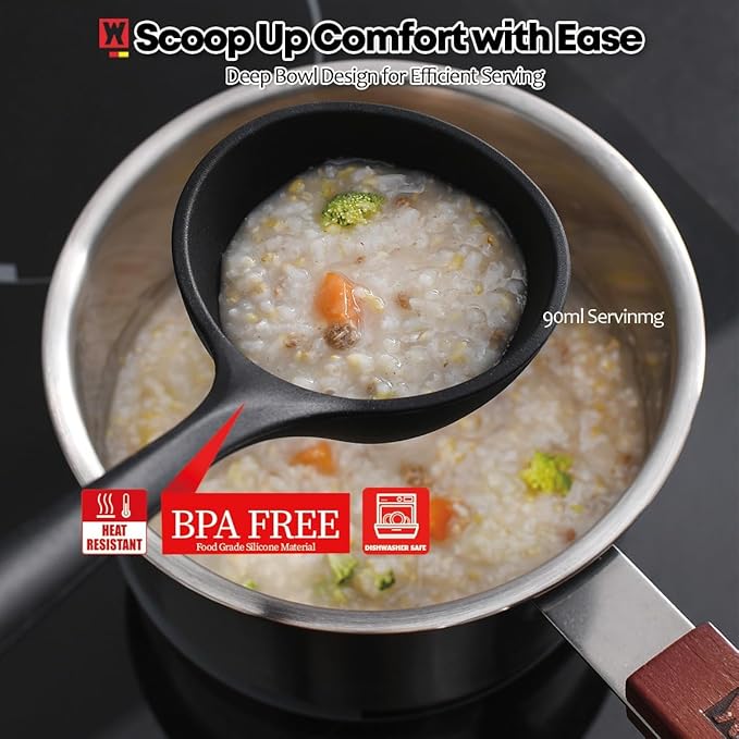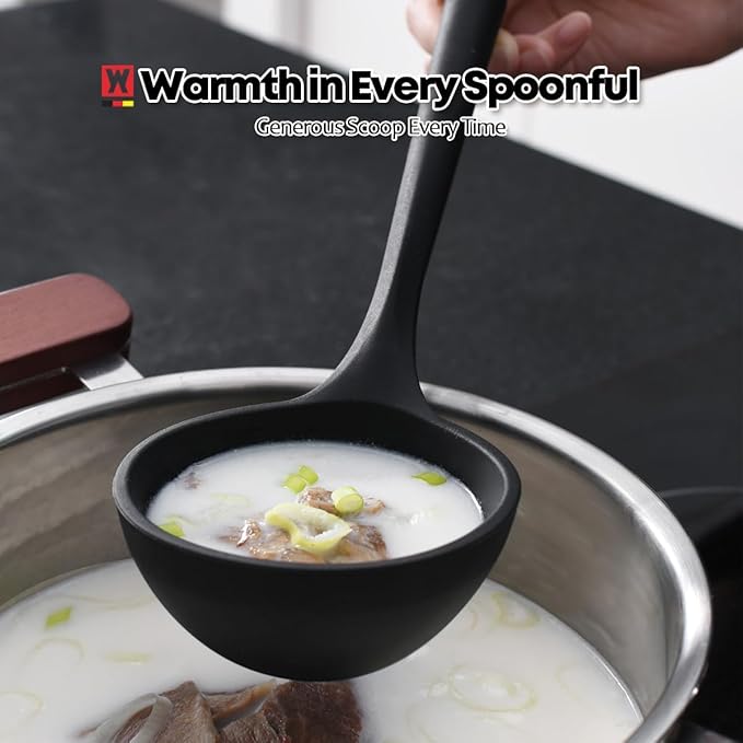 - VERSATILE KITCHEN TOOLS: The large ladle is perfect for serving soups, stews, and sauces, while the slotted spatula is ideal for flipping and lifting a variety of dishes, including eggs, burgers, crepes, and more. These versatile tools bring convenience to your cooking routine.