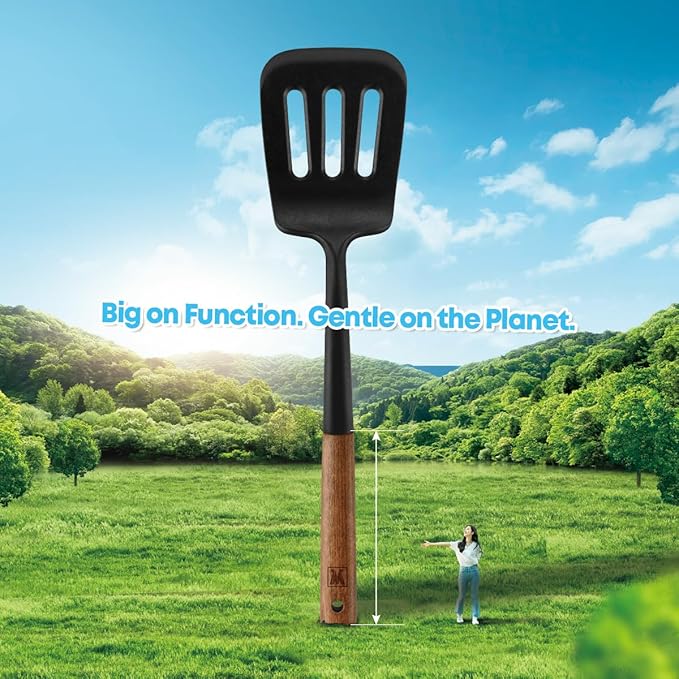 - PREMIUM QUALITY AND DURABILITY: Both utensils are made from high-grade, heat-resistant silicone paired with sturdy, non-slip wooden handles. The silicone heads are gentle on non-stick cookware, preventing scratches and ensuring long-lasting use.