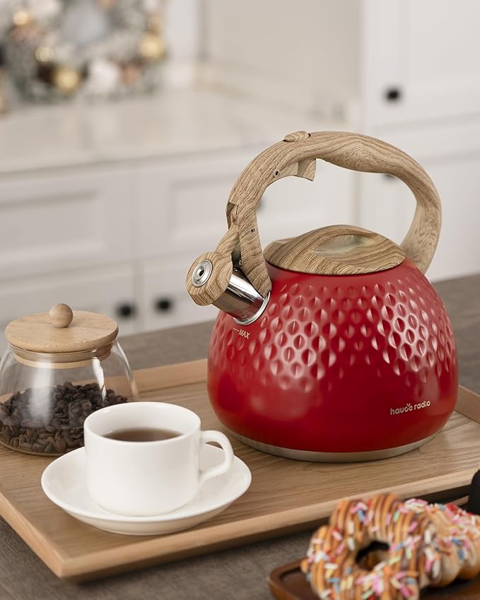 - Loud Whistle: This teapot kettle has a tight-fitting lid that keeps steam in the hot teapot for quick heating, and the teapot will whistle to remind you after boiling water. Do not overfill the jug or the whistle may not sound