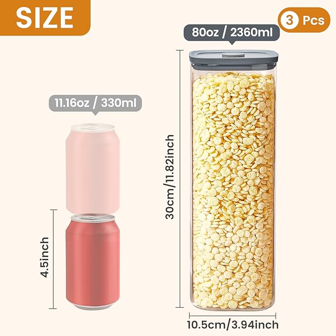 - 【Ideal for Storing Large Amounts of Food】This storage jar is up to 11 inches high and the width increases to 4 inches, which is large enough and perfect for storing different types of dry goods, including pasta, noodles, flour,sugar, cereal and more. Keep your kitchen neat and organized and away from clutter.