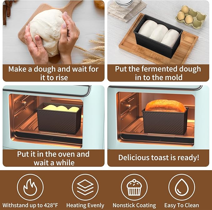 - SAFE MATERIAL - The baking pan made of carbon steel is sturdy and durable, heating evenly (capable of withstanding temperatures up to 428°F). It has excellent wear resistance, is non-stick, and easy to clean. The carbon steel material ensures that the toast is crispy on the outside and tender on the inside, while also ensuring healthier and safer food preparation