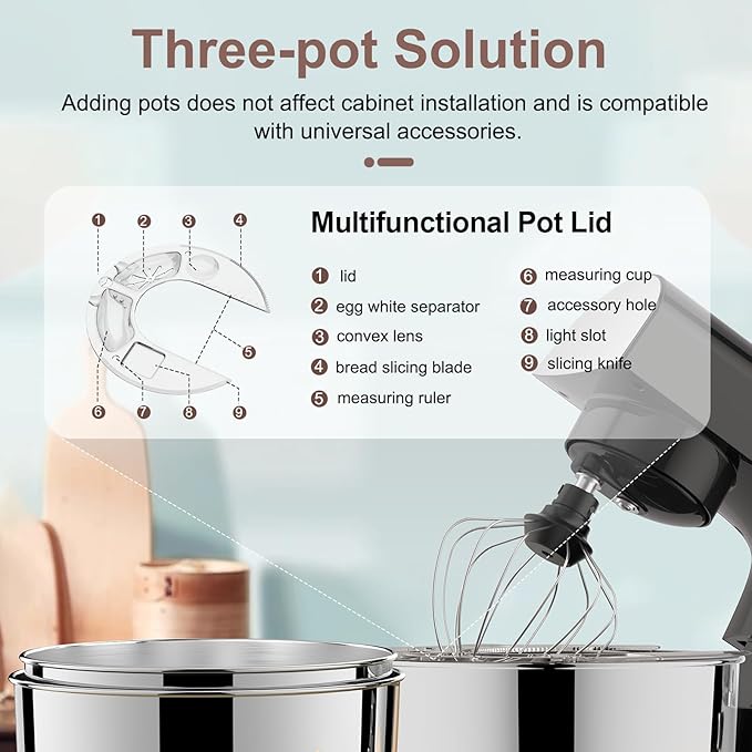 - Upgraded Multi Attachments β Die-cast dough hook and flat beater, stainless steel whisk are easy to attach, using upgraded material, more sturdy and durable. There is a gasket at the top joint to prevent food residue from splashing into the joint to make cleaning more convenient.