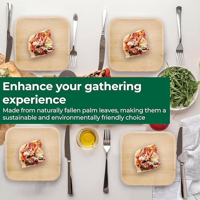 - Handcrafted from Natural Palm Leaves: Each 7" and 10" square palm leaf plate is carefully handcrafted by skilled artisans using naturally fallen palm leaves, making each one unique with natural variations. The chemical-free production process ensures no trees are harmed, offering a sustainable, biodegradable option that is perfect for eco-conscious consumers.