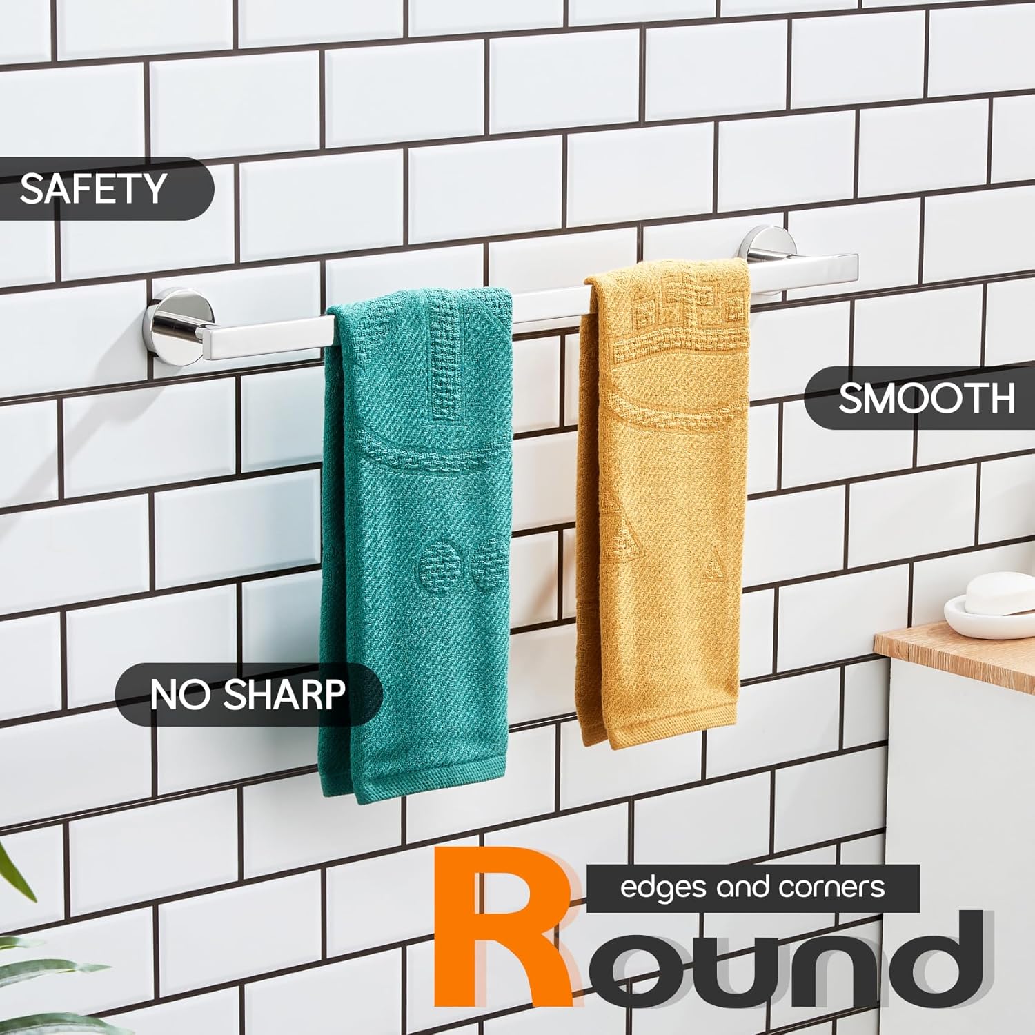 24 Inch Bathroom Towel Bar Bath Towel Rack Kitchen Towel Holder Towel Rails Wall Mounted SUS304 Stainless Steel Polished Chrome AN4001CH-L24
